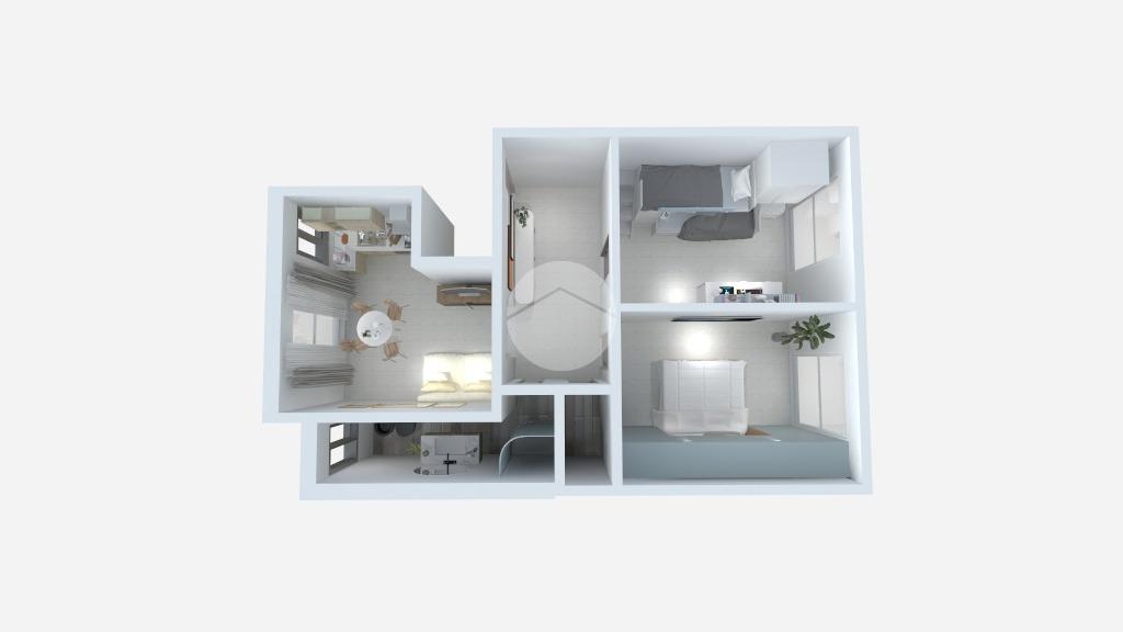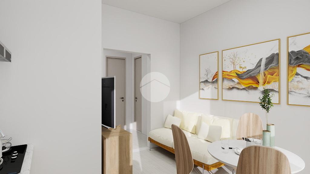 L’appartamento si apre su un ampio disimpegno che conduce alla zona giorno, composta da soggiorno con cucinino, con la possibilità di trasformare l’ambiente in un’unica zona living open space. Dal soggiorno si accede a un balcone che offre un piacevole sfogo esterno. La zona notte comprende due camere da letto, di cui una matrimoniale, entrambe con affaccio su balconi esterni.