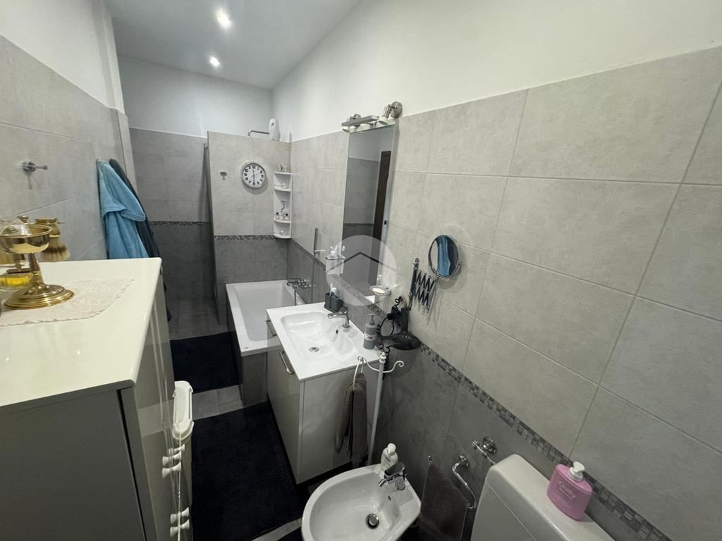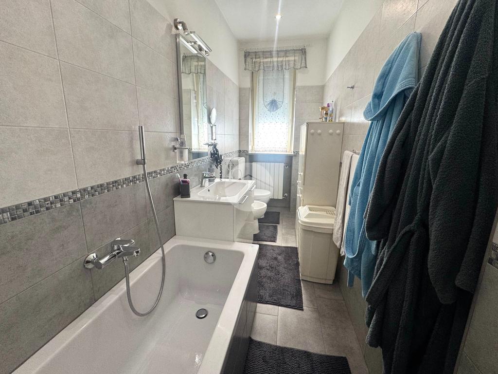 Il bagno, recentemente ristrutturato, è completo di vasca e doccia. Gli infissi in legno con doppio vetro assicurano un ottimo isolamento termico e acustico. A completare la proprietà troviamo un ripostiglio funzionale al piano abitativo, una cantina di pertinenza ed un box auto.