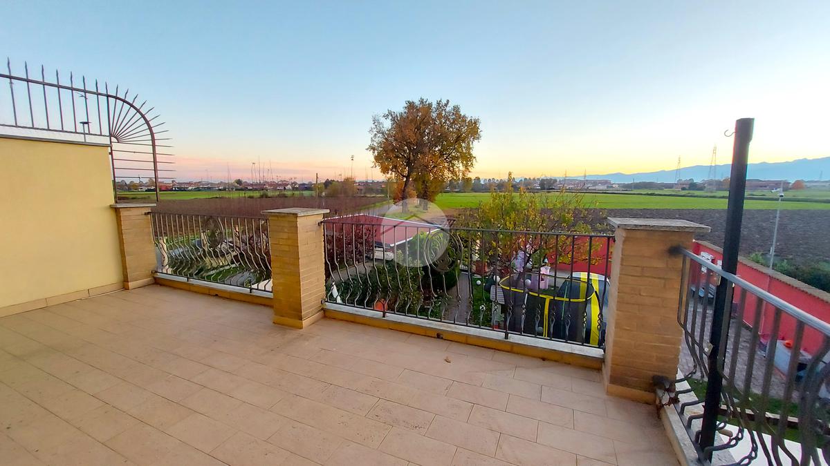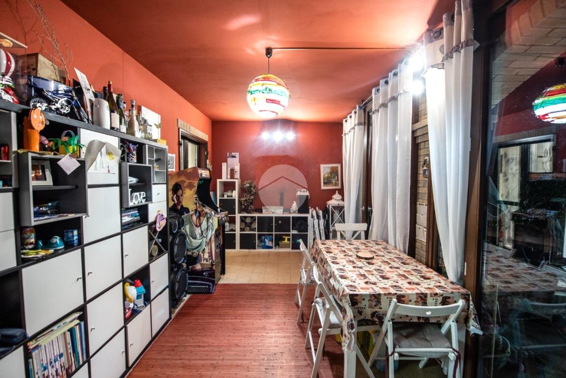 La porzione di bifamiliare è stata costruita nel 2005, libera su tre lati e sviluppata su due livelli. L’ingresso si apre su un ampio soggiorno luminoso, impreziosito dal camino e dalla scala a vista, con accesso diretto alla veranda sfruttabile anche durante la stagione invernale. Adiacente si trova la cucina abitabile, anch’essa collegata alla veranda, mentre il primo bagno del piano terra è dotato di doccia.