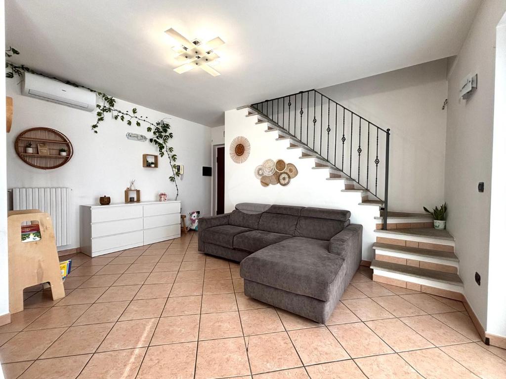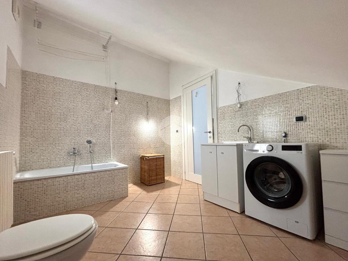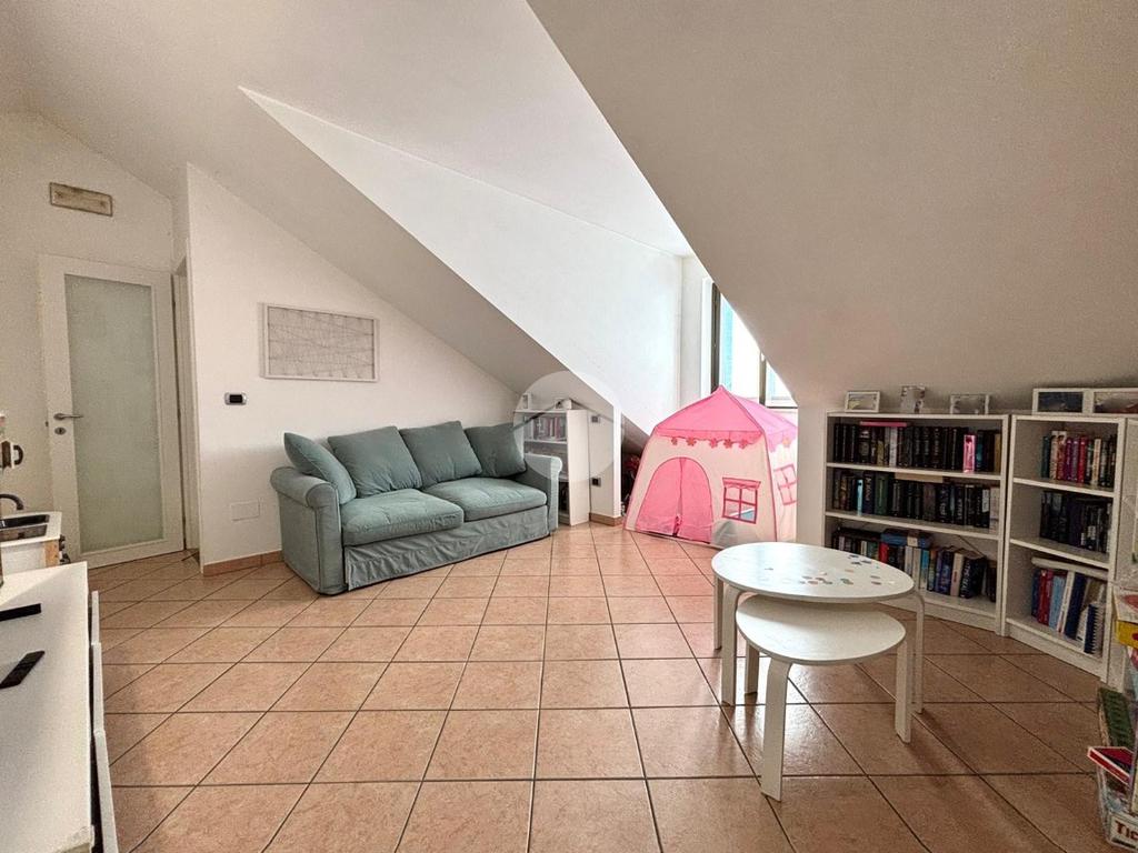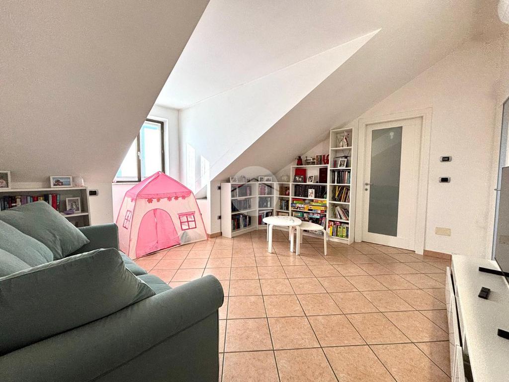 L’ingresso si apre su una cucina abitabile, ampia e particolarmente luminosa, con affaccio sul soggiorno, i due ambienti sono ben collegati tra loro e valorizzati dall’uscita diretta sul balcone, ideale da vivere e sfruttare durante la bella stagione. La zona notte ospita una spaziosa camera da letto matrimoniale con affaccio sul secondo balcone, garantendo privacy e luminosità. Il disimpegno è ben organizzato e sfruttabile come lavanderia, mentre il bagno, di generose dimensioni, è dotato di comoda doccia. Una scala interna conduce al piano sottotetto, dove si sviluppano tre locali versatili e ben fruibili; uno perfetto come salotto, area relax o stanza giochi per bambini, un secondo ideale come palestra o studio, e un terzo come ulteriore lavanderia. L’immobile è dotato di riscaldamento autonomo, split per aria calda e fredda e infissi in doppio vetro, a garanzia di comfort ed efficienza energetica. Completano la proprietà una comoda cantina e un box auto di pertinenza. Soluzione ideale per chi cerca spazi ben distribuiti, comfort moderni e un contesto recente e curato.