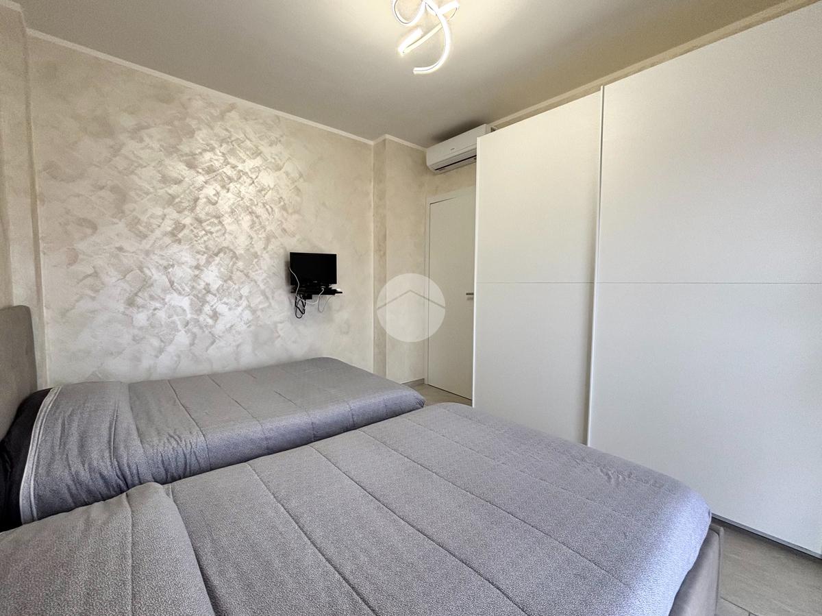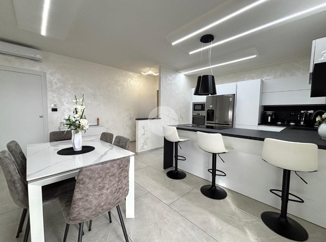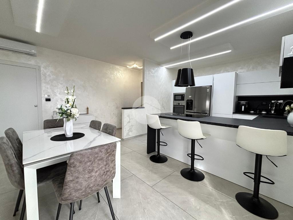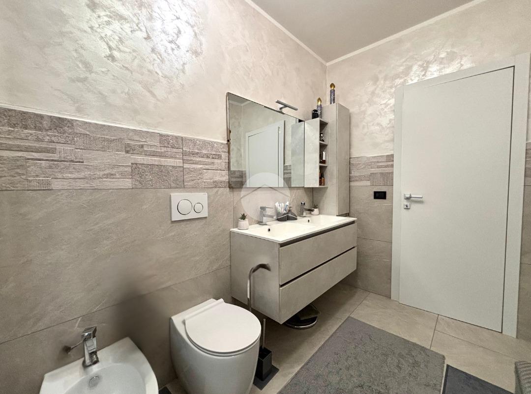 L’ingresso si apre su un accogliente soggiorno living con cucina a vista, un ambiente moderno e ben organizzato, particolarmente luminoso grazie alla presenza di un ampio balcone che garantisce ottima luce naturale e uno sfogo esterno vivibile. La zona notte è composta da due camere da letto ben proporzionate: una con accesso diretto al balcone e una spaziosa camera matrimoniale, ideale per chi desidera ambienti confortevoli e ben distribuiti. Il bagno, di generose dimensioni, è stato rinnovato ed è dotato di una moderna doccia a filo pavimento, che rende l’ambiente pratico e funzionale.