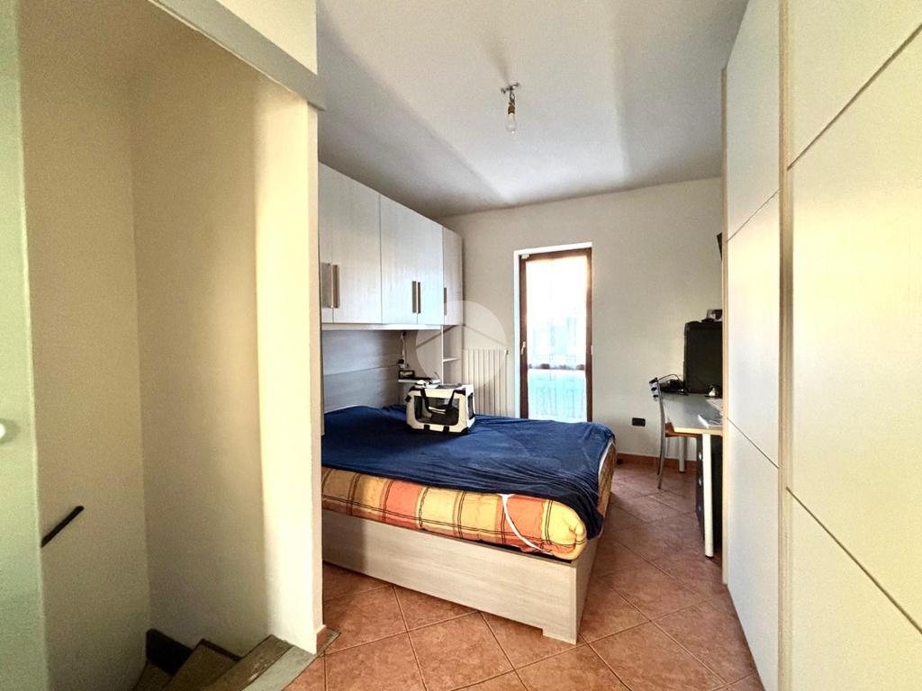 La scala interna conduce al piano superiore, dove si apre una spaziosa camera da letto matrimoniale, arricchita da ottima luminosità naturale e collegata a un bagno ampio e confortevole. Da questo livello si accede direttamente al terrazzo, un ulteriore spazio esterno che offre privacy e la possibilità di creare una zona relax panoramica.