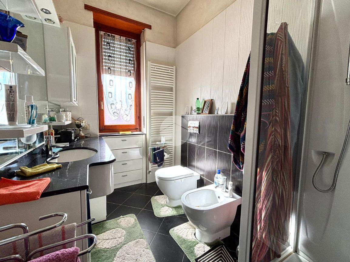 La zona notte comprende due camere da letto matrimoniali, entrambe con affaccio sul balcone interno cortile, e un bagno finestrato dotato di doccia.